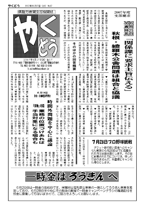 豊関支部ニュース『やくどう』第67号(6月27日付け)を発行しました。